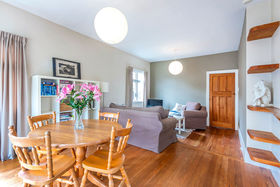 Delightful warm living with heat pump, open plan dining and kitchen opens with doors to sun-drenched deck. Family sized kitchen with ample space and pantry as well as plenty of drawers and cupboards for storage.